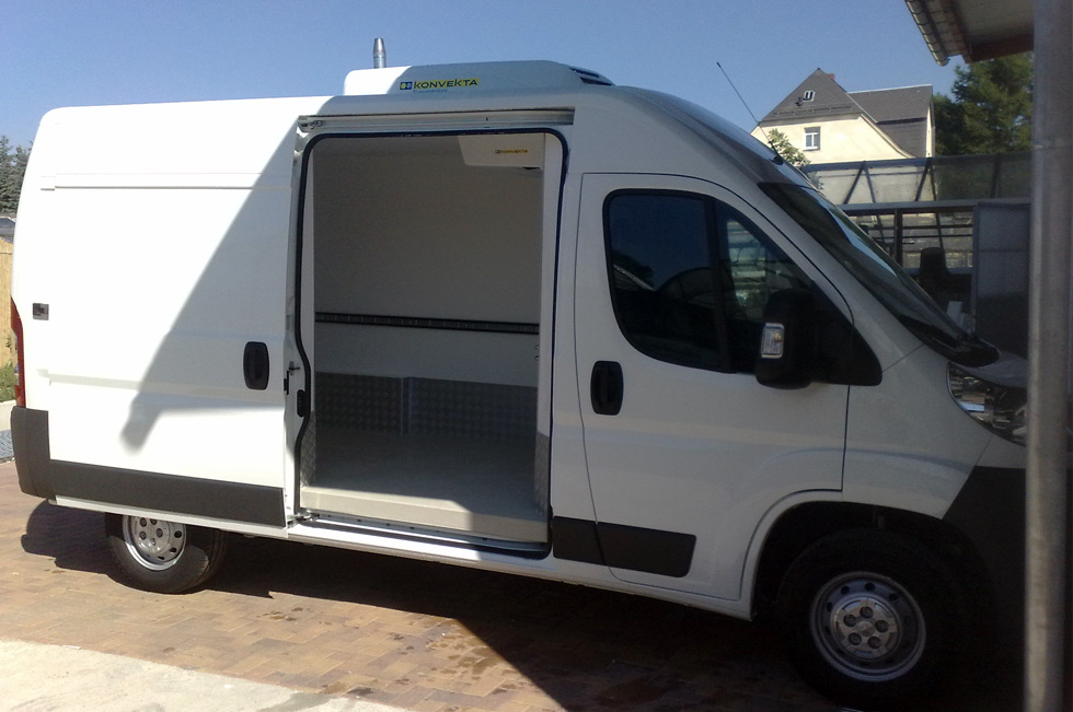Fahrzeugkühlanlagen und Fahrzeugausbau ist in unserer Firma ein „Neuer-Alter Bereich“. Unsere Firma, Klimatechnik Otto GmbH, hat bereits schon Mitte der 1990iger Jahre Kühlausbauten in Verbindung mit KONVEKTA Kühlanlagen angefertigt. Damals haben wir z.B. für den DRK-BLUTSPENDEDIENST, Kühlfahrzeuge mit zwei Kammern angefertigt. Diese Kammern konnten unabhängig voneinander gekühlt oder beheizt werden. Die Heizung wurde von einer EBERSPÄCHER Wasserheizung übernommen und konnte genau, wie die KONVEKTA Kühlanlage, im Stand betrieben werden.